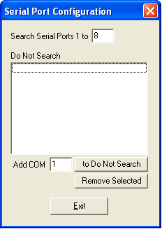 The plug and play searching may affect other serial devices connected to the PC. If this is suspected, then use the 'Do not search' list to exclude the relevant serial ports.