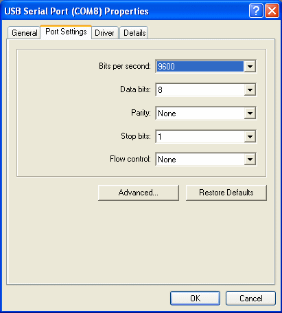 Right click on the required USB Serial port and select Properties.