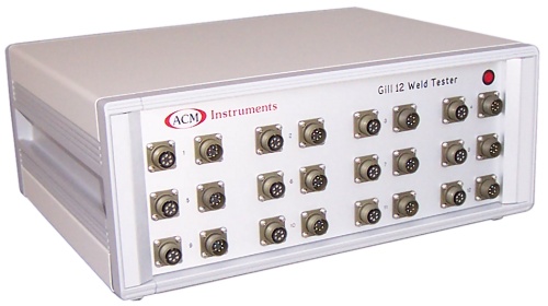 The Weld Tester is our most versatile electrochemical monitoring instrument. Housed in a substantial metal case with brushed anodised aluminium front panel and green military specification connectors this equipment looks functional and professional. The top row of connectors are exactly the same as provided on a Gill 12 whilst the bottom row are for the additional weld segments. Using the same Potentiostat, Galvanostat, Zero Resistance Ammeter with integrated Frequency Response Analyser and Sweep Generator as a Gill 12 allows all the tests supplied with the Gill 12 to be supplied with the Weld Tester. The provision of an additional four ZRAs per channel allows segmented and mixed metal electrodes to be used. Each of these additional ZRAs has the same attributes as the principal ZRA, that is full autoranging and identical frequency response. It is an impressive and unique sight to see a Nyquist plot generated with five curves, one for each segment, as an AC Impedance test continues. Connection to a Windows PC is via an isolated RS232 connector. The whole instrument is electrically floating allowing for tests on earthed flow rigs to have no unwanted ground loops. The software supplied (written in C++ for maximum reliability between versions of Windows) allows experimental sequences to be easily created, using from 1 to 5 working electrodes per test. All of our DC, IR Compensation and AC tests are included with the instrument, as is the vital Analysis software for analysing the results. Available from one (Gill AC with Weld option) to twelve channels as a laboratory instrument and now available to be built into a Field Machine for work away from the laboratory, the Weld Tester provides the modern corrosion and electrochemistry scientist with the tool to study real, mixed, systems as they are coupled together in the real world. Please contact Nick for more details. [Weld Tester Datasheet] [Software Overview] [Weld Application Notes] [Weld Industry Notes] Detailed Images |