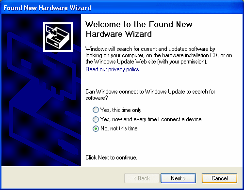 Windows may ask you if you wish to check Windows Update to see if there is a newer driver. Select “No, not this time”.